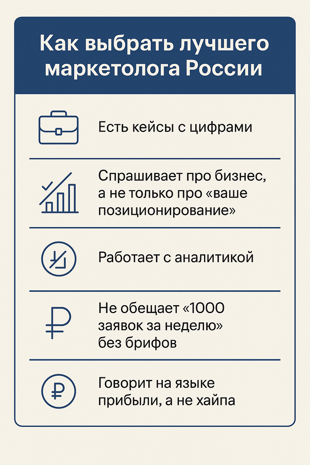 Чеклист: как выбрать лучшего маркетолога РФ